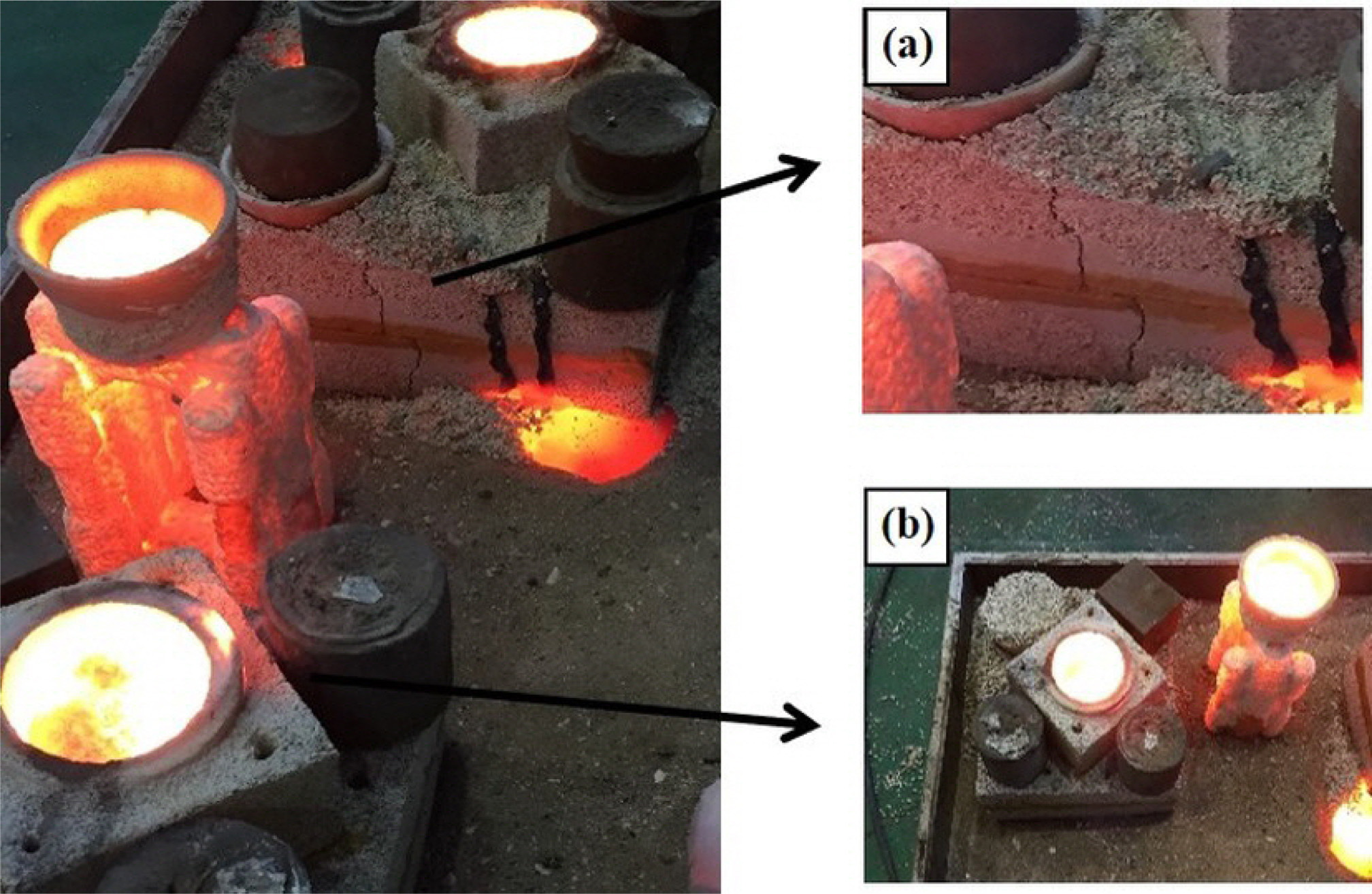Fig. 7 Shape of mold: (a) conventional sand-casting process and (b) modified sand-casting with the inorganic binder during casting. |
