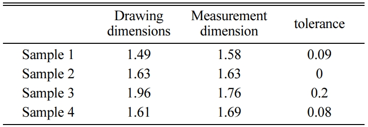 The ultrasonic analysis for thickness evaluation of casting impeller, and RT and MT tests for defect analysis were produced. The thickness results of the cast impeller and the dimension results in the drawing are shown in Table 5, and the Thickness tolerance of the impeller was about ± 0.2. Magnetic particle testing (MT) and radiographic test (RT) were performed to examine the external and internal defects of the impeller. The MT is a non-destructive test method for detecting by magnetic particles attached to magnetic poles formed on a defective part to examine surface defect. A RT test was performed to identify internal defects. The manufactured the gypsum bleed pump impeller ensured soundness in both MT and RT tests.