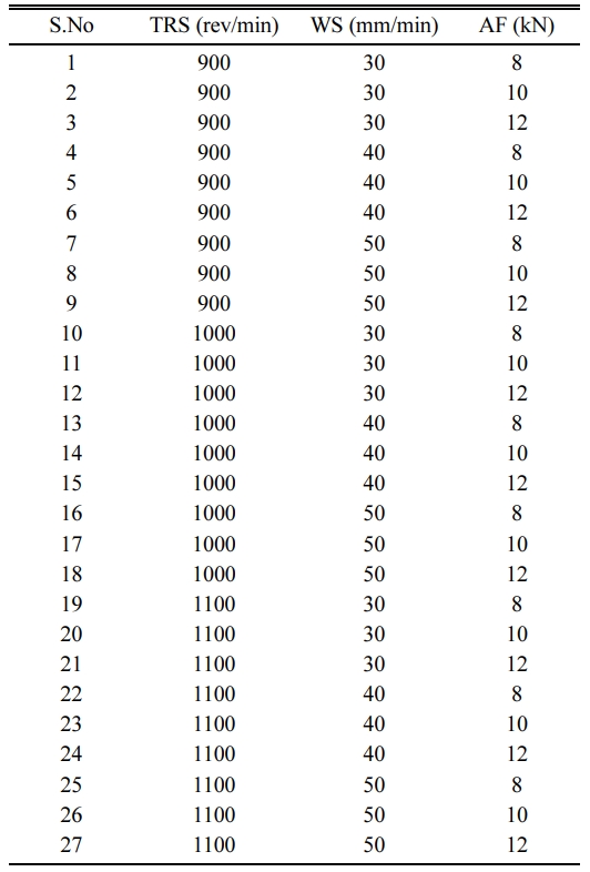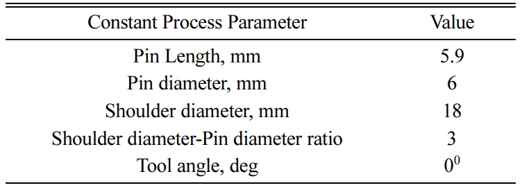 In another study, Al alloy AA5052-H32 and HSLA steel IRS-M42-97 of 3mm thickness were butt welded using FSW technique. The axial forces (AF) were varied from 4 to 9 kN and keeping the other FSW parameters as constant. The highest weld joint strength of 189 MPa was obtained at 7 kN axial force. It is observed that, the influence of AF that could produce joints with good strength [19]. Tool pin profile plays a key role in terms of material flow and control in FSW process [20]. In a study, AMMC using different profiles of tools with different tool materials and D/d ratio 2, 3, 4 on a commercial CNC enabled FSW machine. From the results, it was observed that the effect of tool profile makes an impact in terms of quality of weld joints [21].