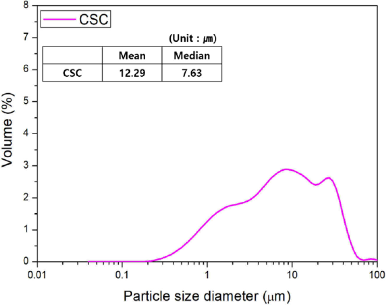 Fig. 2 Particle size diameter of CSC. |