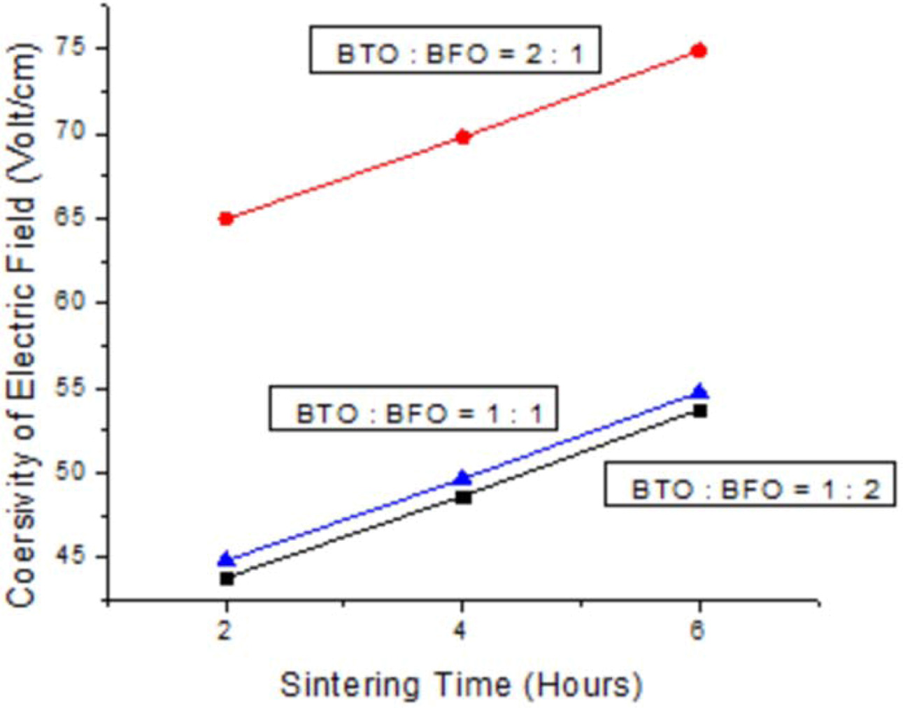 Fig. 4 Sintering time vs coersivity of electric field. |