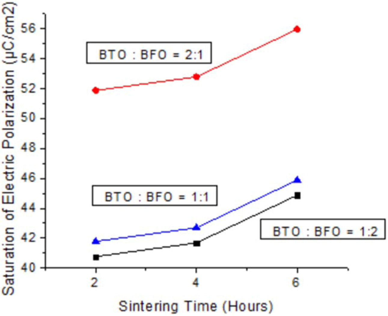 Fig. 6 Sintering time vs saturation of electric polarization. |