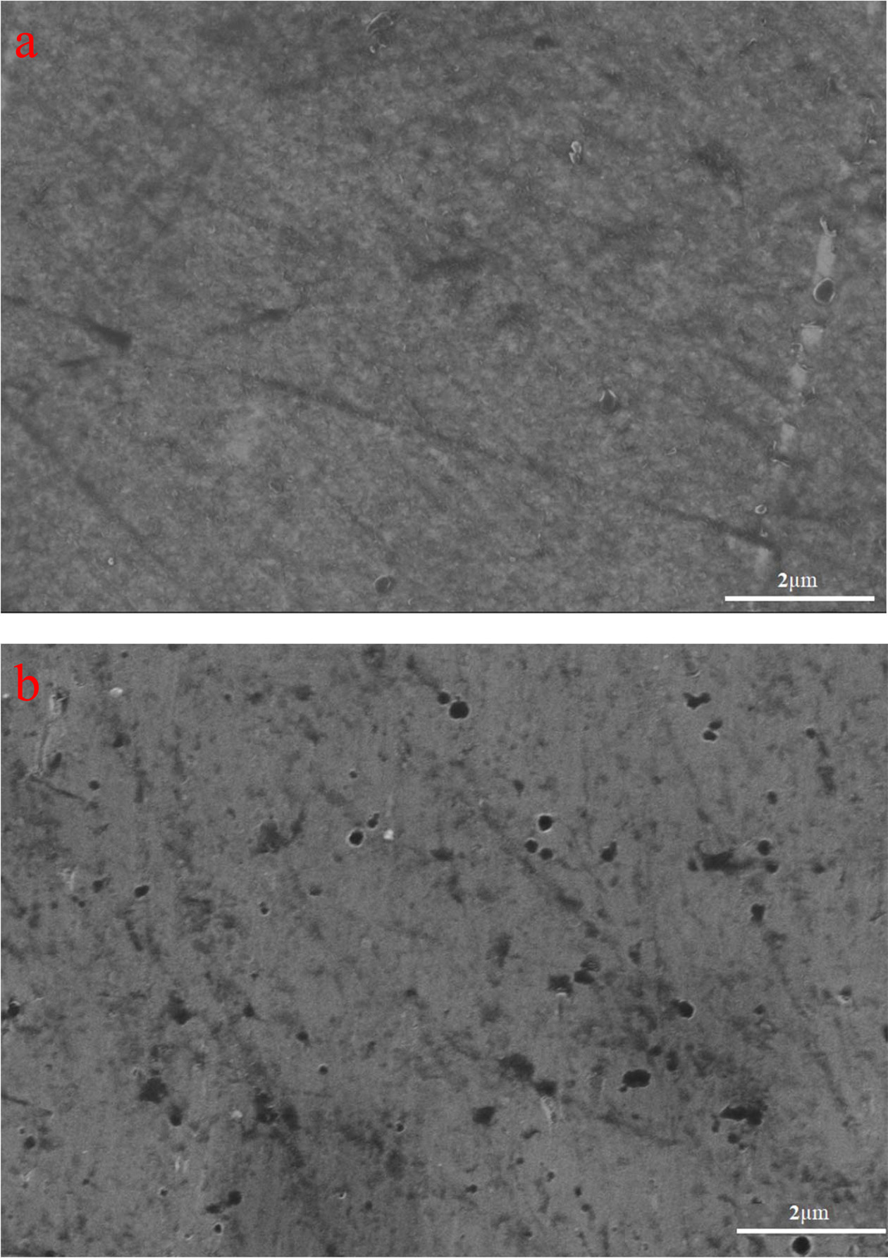 Fig. 2 SEM images of uncoated alloys: (a) AZ91(Mag 20k X). (b) AZ31 (Mag 20k X). |