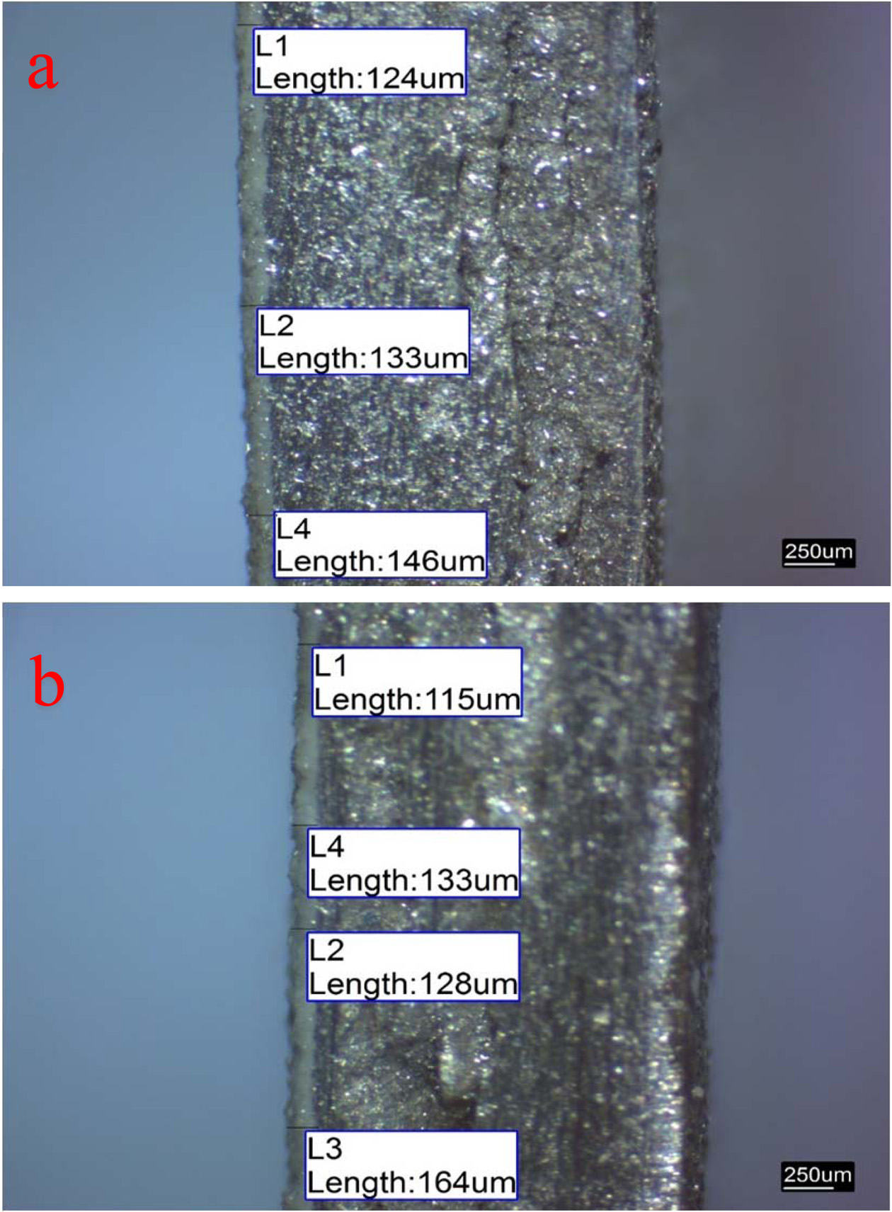 Fig. 6 Coating thicknesses: (a) AZ31, (b) AZ91. |