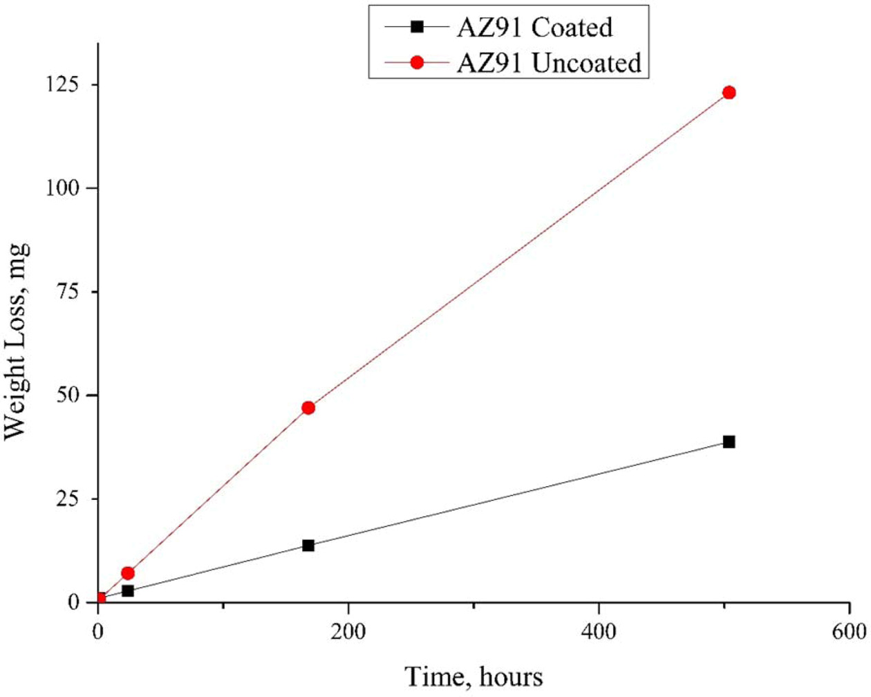 Fig. 7 AZ91 corrosion experiments weight loss results. |