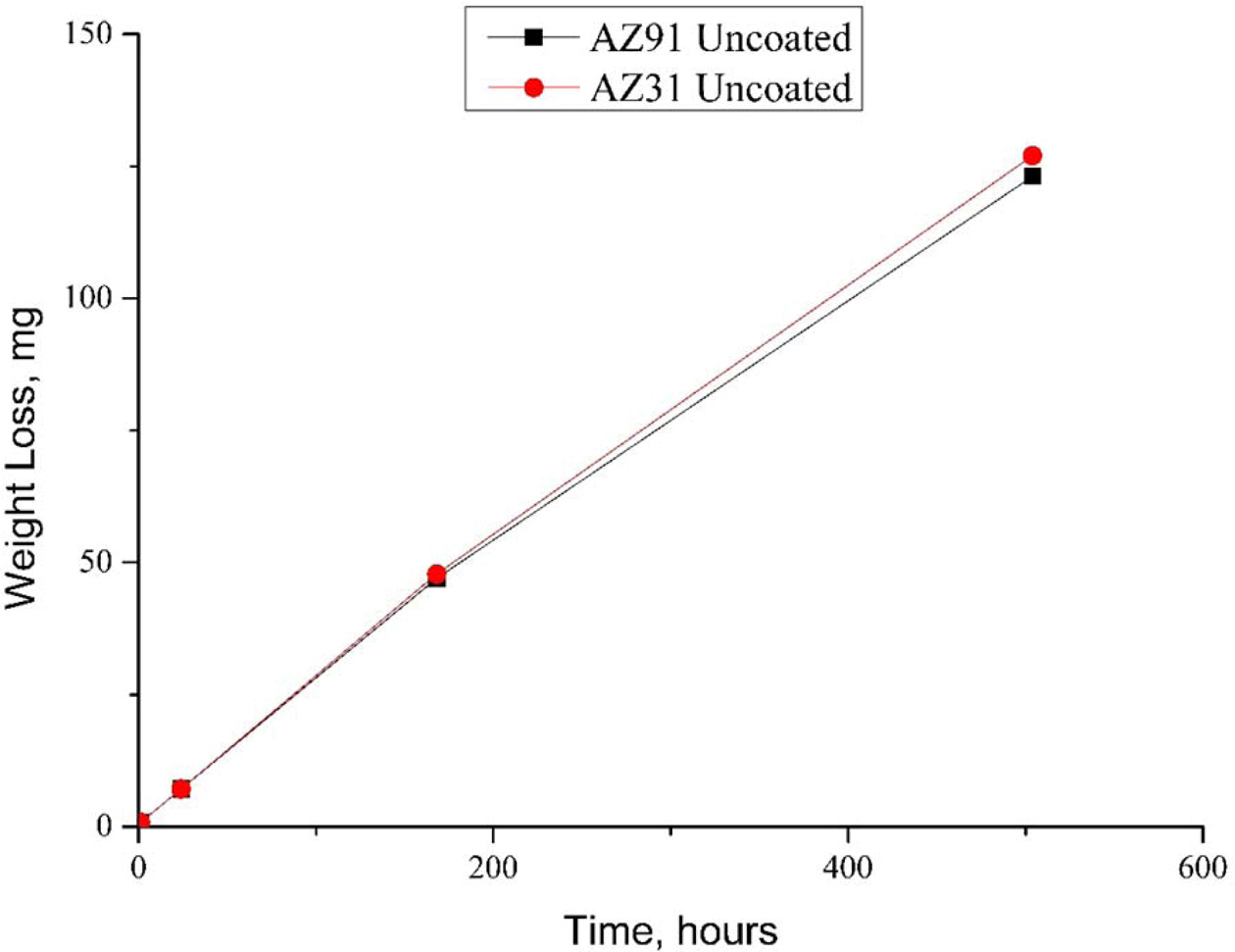 Fig. 8 AZ31 corrosion experiments weight loss results. |
