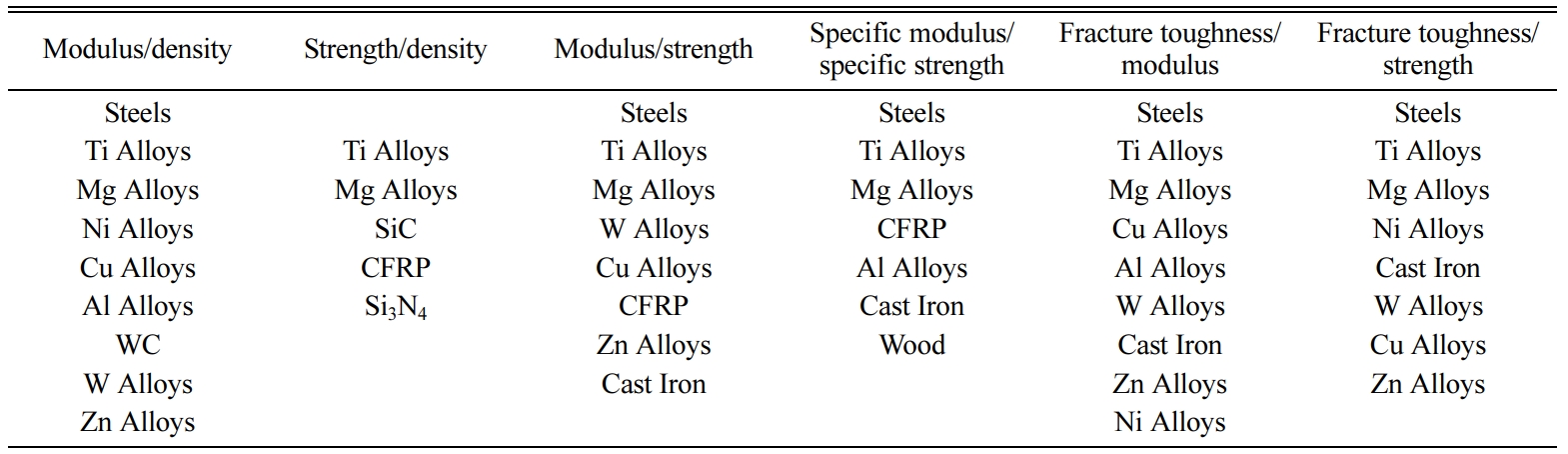 In this work, the suitability of alternative materials in place of conventional materials for hard tissue replace- ment procedures was determined. For this purpose, Ashby Charts were examined in this study. During the process of preparing these charts, cortical screws and plates properties were considered. It is important that the implant material shows comparable properties to the human bone. The properties of the human bone are given in Table 1.