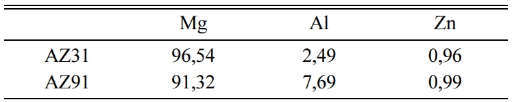 The Mg-alloys used in this work were supplied by Luoyang Magnesium Gurnee Metal Material Co., Ltd. The chemical compositions of these materials were analyzed by EDS technique and the results are given in Table 3. Mg-alloys used as the backing material in the experiments were cut to the dimensions 50 ´ 10 ´ 2 mm and the coating was done on the cut Mg plates.