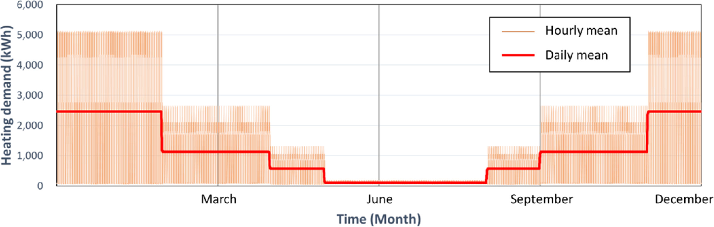 Fig. 4 An annual profile of heat demand predicted for industrial buildings. |