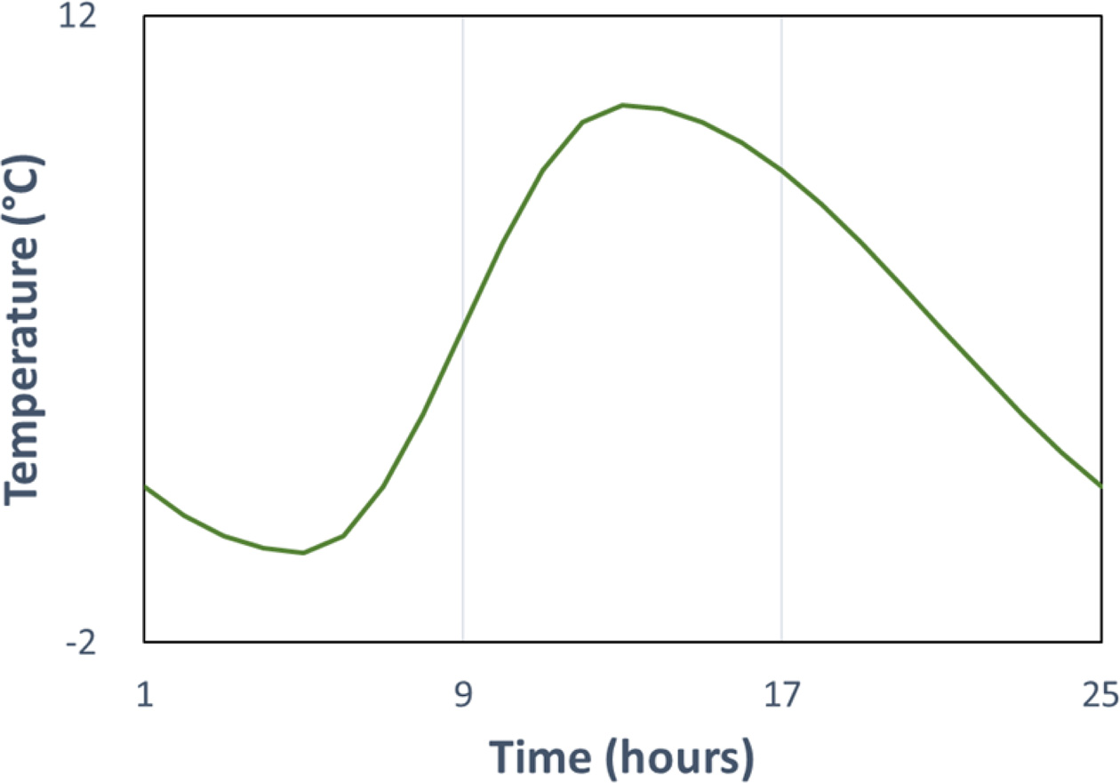 Fig. 6 Profile assumed for temperature changes over a day. |