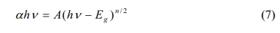The optical property of the samples are investigated using the UV-VIS diffuse reflection spectrum in the wavelength range of 250~800 nm. From Fig. 5(a), the air-annealed BIT films have stronger absorption in the λ = 300~500 nm region. The optical band gap values of the samples are calculated using Eq. (7) [29]: