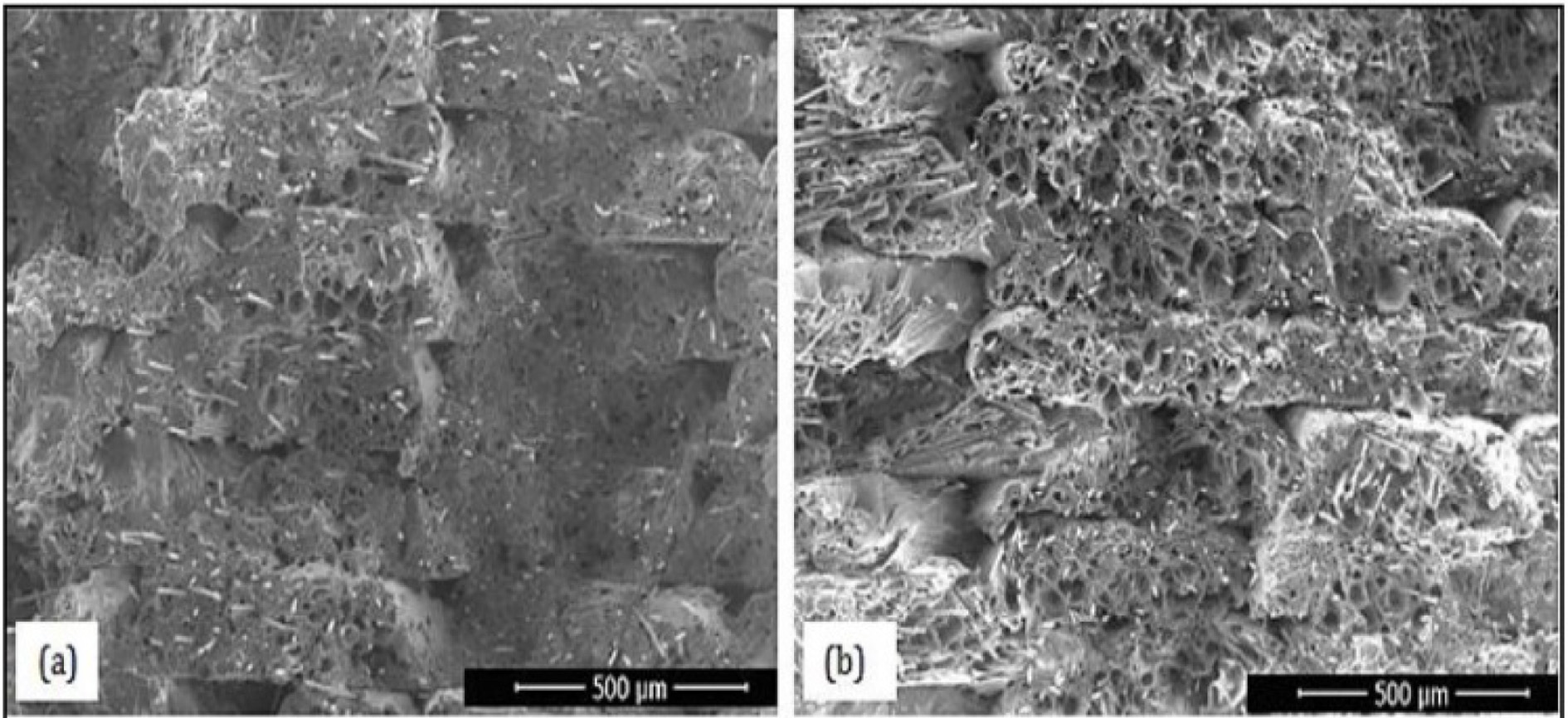 Fig. 3 Microstructures of (a) ABS and (b) PLA filaments. |