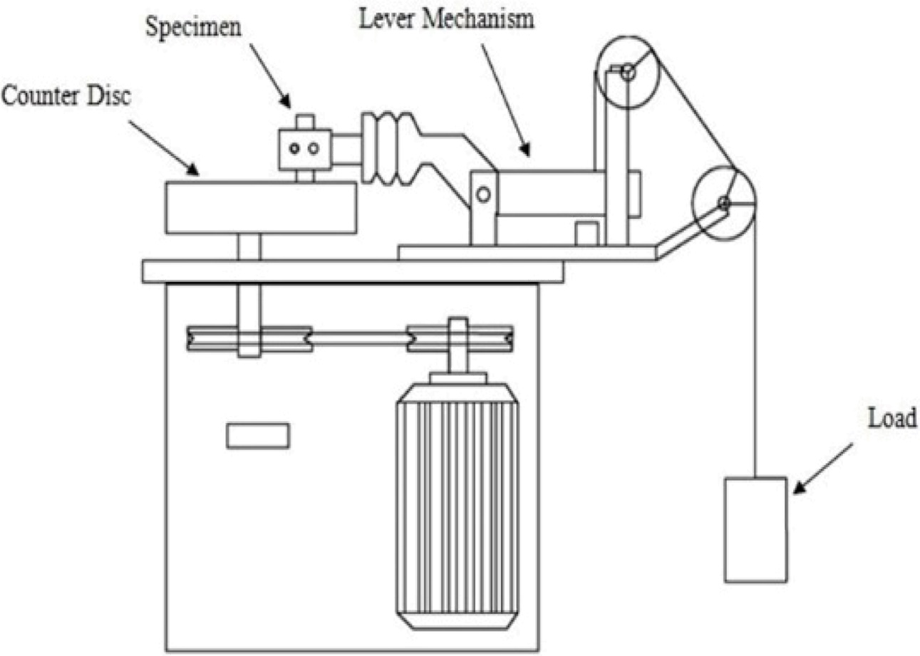 Fig. 5 Schematic of pin on disc wear device. |