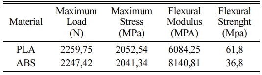 The process parameters have significant effects on producing the printable parts. In addition, when different characteristics of plastics are added, different results are obtained. While all parameters are the same, it is possible to see high strength and high bending resistance of PLA material compared to ABS material [20, 21].