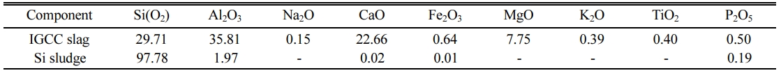 Table 1 Chemical composition of the IGCC slag and Si sludge as evaluated by XRF (wt.%) |