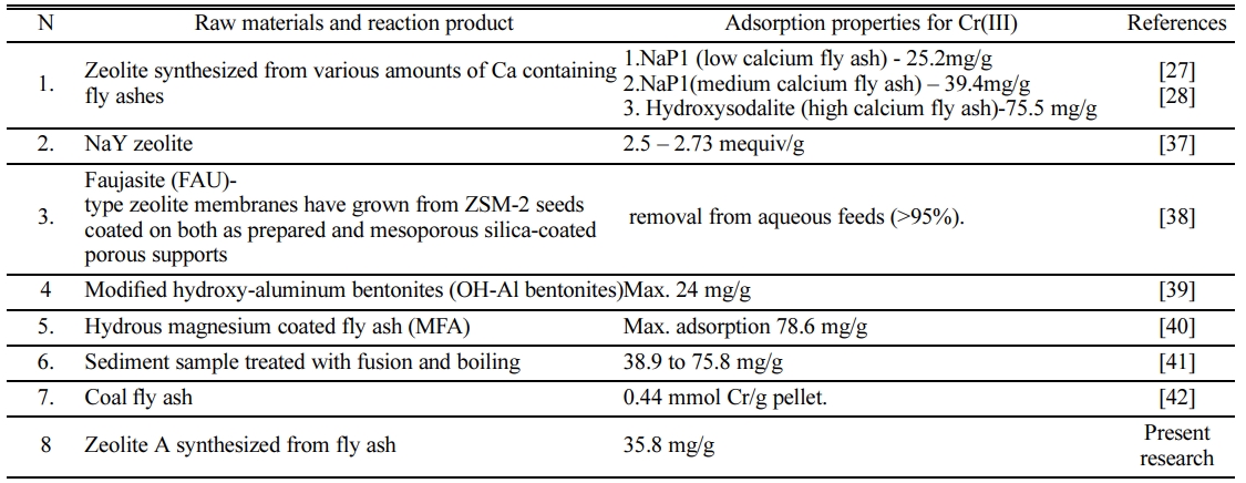 A comparison of the present fly ash-derived zeolite results for the adsorption of Cr (III) from the water with literature results for other adsorbents is given in Table 4.