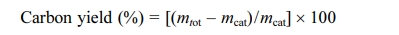 where mcat is initial catalyst amount (before reaction) and mtot is the total sample weight after synthesis [20]. From the TGA curves, the estimated amount of carbon yield has been allowed.