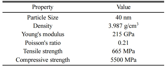 In the first step of fabrication, the Al2O3 nanoparticles were dispersed into acetone and mixed with the epoxy. Specifications of the Al2O3 powder are presented in Table 4. The mixtures thus prepared in different proportions were stirred with Ultrasonic cavitations (60% amplitude for about 30 min). In the next step, acetone was removed from the epoxy mixture by using vacuum oven (70 oC for 24 h). Lastly, the curing agent was added manually into the epoxy and stirred for 5-7 min. Then the uniform mixture of epoxy resin was applied on the carbon fiber surface. Slight pressure was applied on to the surface using a roller, to remove any air trapped as well as the surplus polymer present. Each laminate was cured for 24 h by hydraulic press under a pressure of 30 bar. The prepared composite was cut into sizes of 150 × 60 mm plates with a thickness of 3 mm.