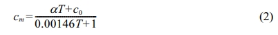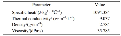 The specific heat is calculated by formula (2), where α = Σωiαi , c0 = Σωici, ωi is mass fraction of compo- nents of precursor glass, αi is calculation factor, ci is calculation factor of precursor glass’s specific heat and T is temperature;