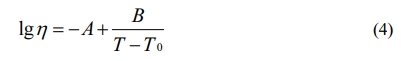 The viscosity is calculated by Fulcher Equation (4),where η is viscosity, A, B is constant of precursor glass; T0 is room temperature (25 oC); T is the actual temperature (1,450 oC)of the molten glass;