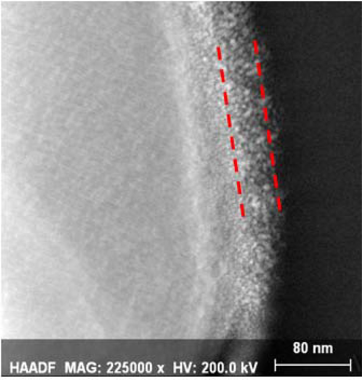 The STEM image of the PNCM and CNCM to confirm the coating layer on the surface, as shown in Fig. 3. The PNCM shows the good crystallinity with no amorphous later on the surface, which is the evidence of no coating layer. However, the CNCM exhibits clear amorphous coating layer on the surface of CNMC. The coating thickness is approximately 30.1 nm. Recently, our group reported that thin and uniform coating layer protect the Ni-rich cathode surface against hydrogen fluoride (HF) attack from electrolyte [7-9]. These struc- tural properties can affect the electrochemical perfor- mances, especially in regard to long-term cycle stability.