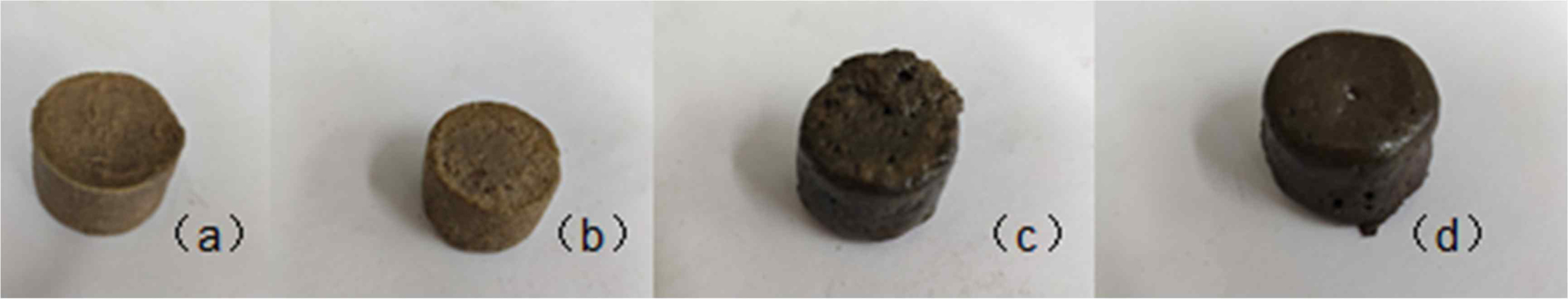 The imageJ gray scale analysis method was used to analyze the pore characteristics of ceramsite under 10% sodium carbonate foaming agent at different tempera- tures, and the results are shown in Fig. 2. When the gas first generated, it partially broke through the structure, forming larger pores as shown in Fig. 2(a). After the gas escaped from the loose structure of the top, as the temperature rose, the rate of gas generation became faster. This process increased the cavity size (Fig. 2(b)). Most of the small cavities resided in the centers of the ceramsite samples. When the small cavities gathered together, the cavities moved through the ceramsite, forming long and narrow pores in the ceramsite. Once the cavities reached the ceramsite surfaces, a low number of small bubbles formed near the glaze surface (Fig. 2(c) and (d)). When the small bubbles on the surface converged at 1100 oC, the void ratio rebounded. Since the large cavities had exited in the previous stage, the number of small bubbles was not increased from the previous stage, so the void ratio did not further rise. confirming that the foaming agent played an important pore-forming role in the ceramsite. From the images in Fig. 2, the gaps were inferred to form as follows: 1) Generated gas lifted the surface of the ceramsite; 2) small bubbles inside the ceramsite merged into larger bubbles; 3) the large bubbles moved from through the ceramsite and eventually escaped; 4) as the large bubbles were removed, more bubbles were transferred from the center to below the glaze.