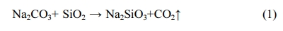The changes of the ceramsite compressive strengths are shown in Fig. 1(b). The results showed that the temperature had great influence on the compressive strengths of the ceramsite. When the temperature increased from 900 oC to 950 oC, the gas escaped from the small gaps in the raw material, and the fine soil particles could overlap but not melt together. The grains remained loose and the strength was not high at this time. After heating, the glaze thickened and wrapped the ceramsite, increasing the overall strength of the material. In addition, the SiO2 and Na2CO3 reacted at the higher temperature, generating more Na2SiO3 as shown below: