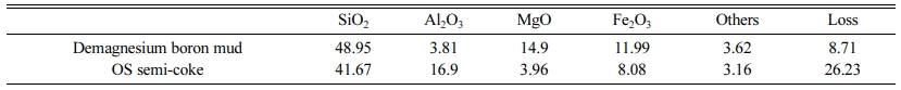 Table 1 Raw materials of demagnesium boron mud and OS semi-coke (wt%), determined by X-ray fluorescence analysis |