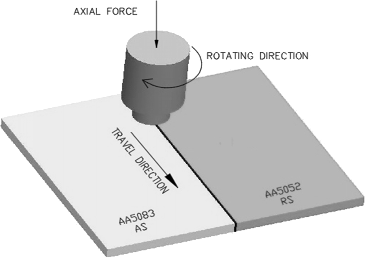 Aluminium alloys 5052-H32 and 5083-H111 are high performance grades of aluminium alloys in their re- spective temper grades showing superior performance attribute such as high weldability and strain hardening. Aluminium alloy 5052-H32 possesses enhanced corrosion resistance and goof cold-formability aptitude while 5083-H111 exhibits better wear resistance. A dissimilar joint among these alloys by a suitable technique is bound to enhance these properties forming a superior weld joint with an amalgam of properties of these respective base alloys. Table 1 summarizes the base metals' chemical composition identified by spectro- chemical analysis.