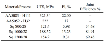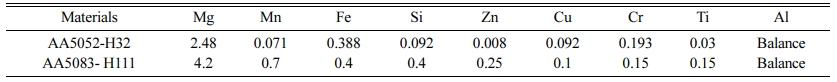 Table 1 Chemical composition of base aluminium alloy (AA5052-H32 and AA5083-H111) |