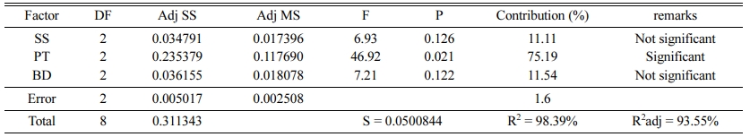 • At last, confirmation experiments were conducted to verify the enhancement in GRG from 0.613 for the initial setting parameter (SS2PT1SD2), to 0.948 for the final optimized parameters (SS2PT2SD3).