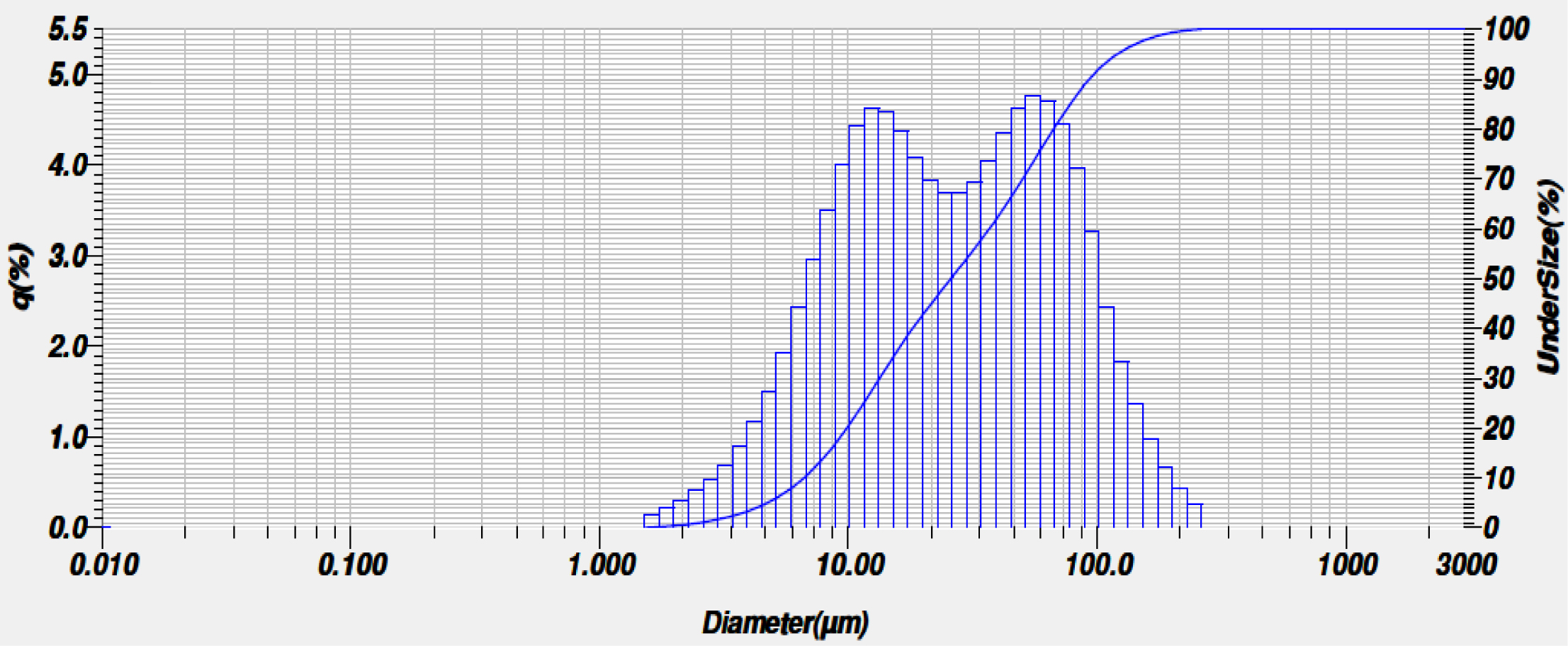 The particle size distribution plot is shown in Fig. 4. All the dried gel particles are calcined at 1000 oC and found to be in the size range of 3-100 µm with an average particle size around 10µm. The particle of the D50 range is 340.7 µm.