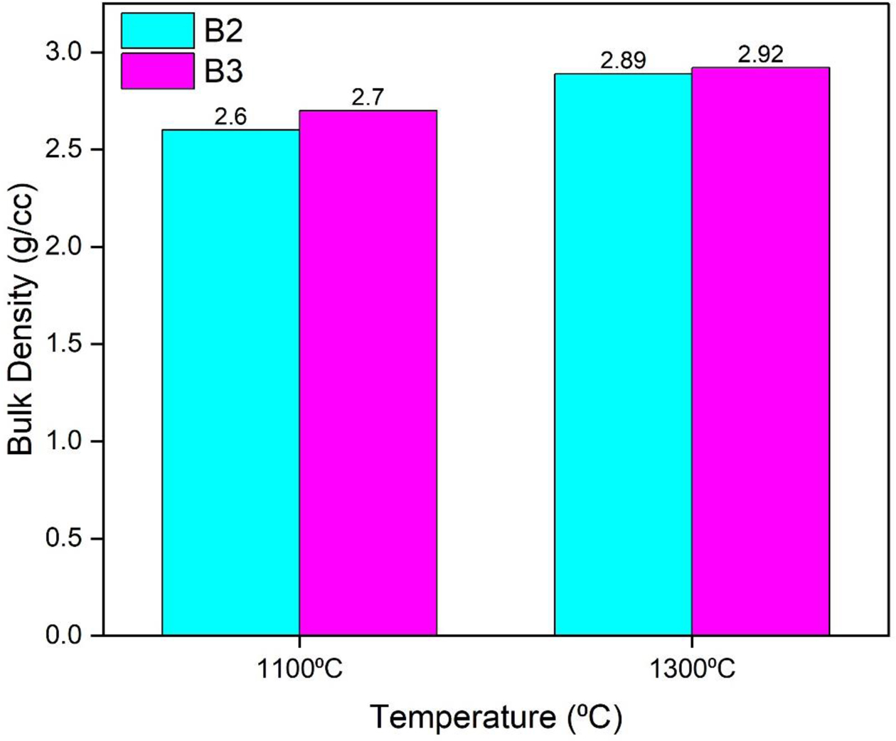 Fig. 9 Bulk density of developed castables. |