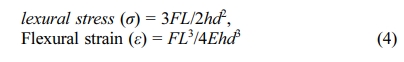 Where h is the height of specimen, d is the thickness of specimen, L is the length between both supports, E is the Elastic modulus inherent in the material, and F is the load applied at fracture.