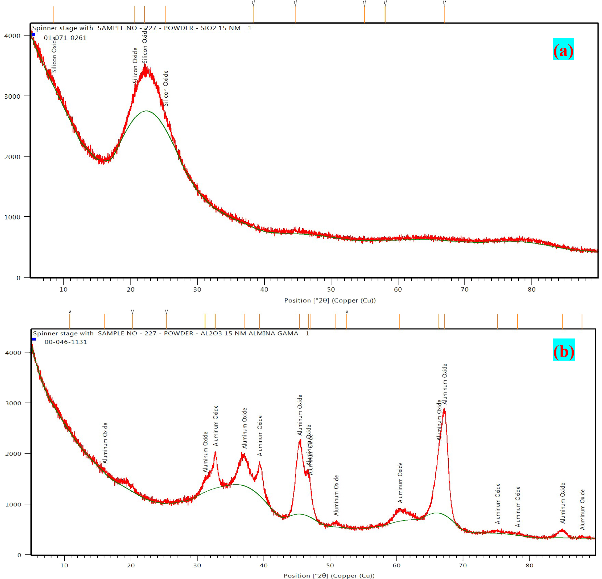 Fig. 4 Stability graph of nanoparticles (a) Al2O3 (b) SiO2. |