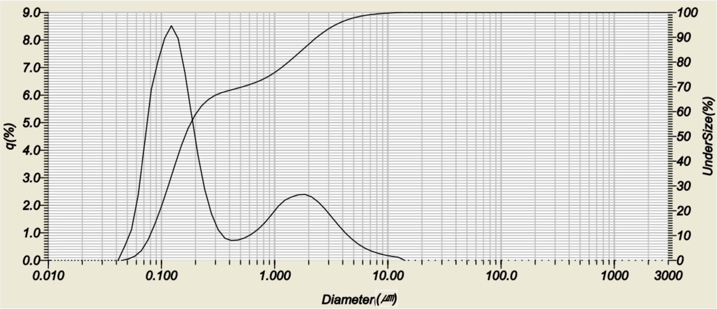 Fig. 1 Particle size analysis of LSMO powders doped with 0.2 mol Ca. |