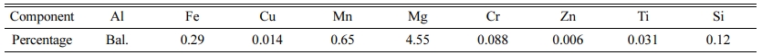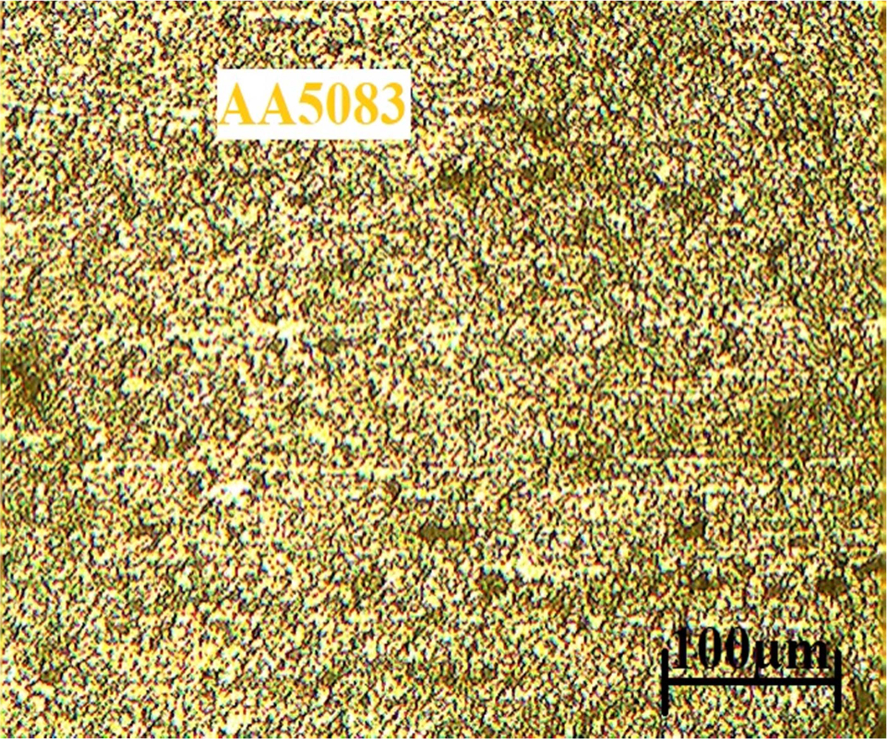 The microstructures of the base metal aluminium matrix and various zones of the friction stir welded specimen were explored by optical and scanning electron microscopy. The samples were investigated in the traverse cross section of the finest weld region which was previously polished by Keller`s reagent for observational purposes. The microstructure of the base metal AA5083 is illustrated in Fig. 5, where the parallel grain structure of the cold worked AA5083 can be observed. The presence of magnesium silicide (Mg2Si) eutectic constituents along the direction of the primary aluminium solid solution.