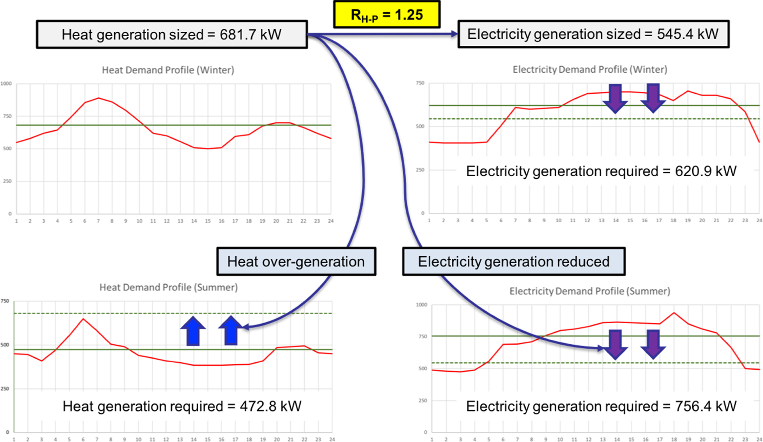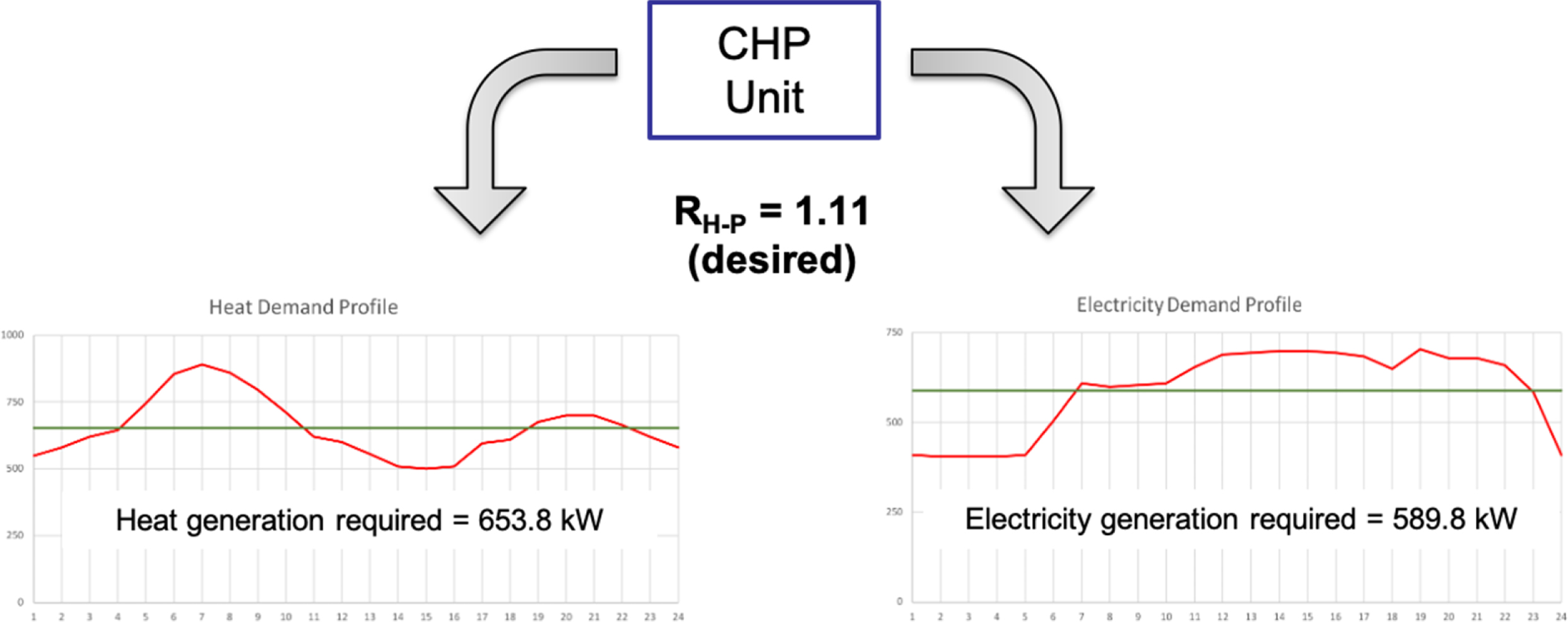 Fig. 4 An illustrative example for the consideration of the Heat-to-Power Ratio for the CHP systems. |
