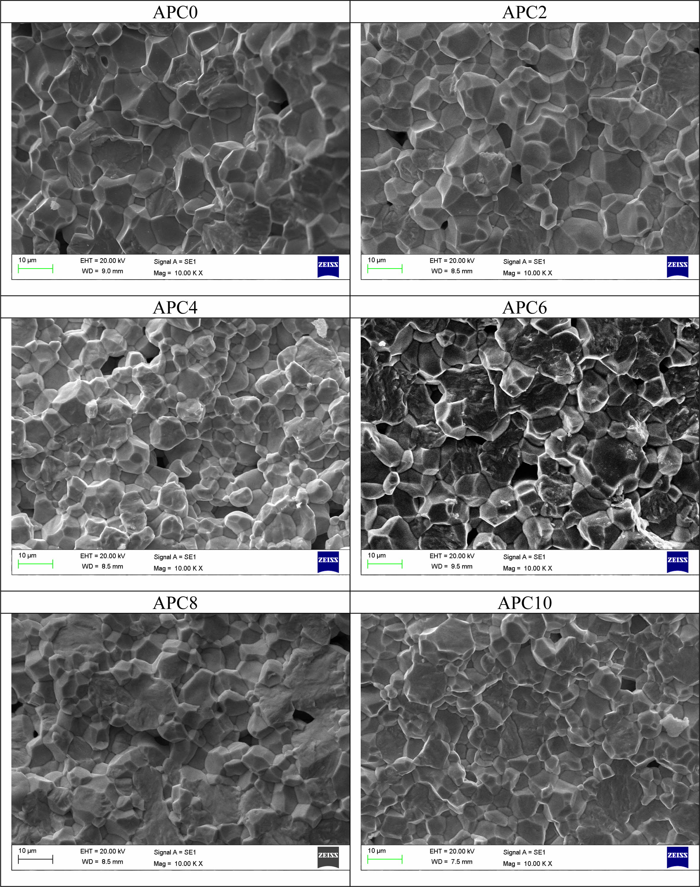 Fig. 2 SEM micrographs of ceramics of APC Series |