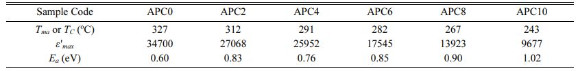 Table 2 Values of ε′ and tanδ at 10 kHz for the samples of APC series at room temperature |