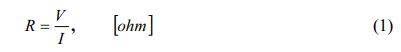 Testing the electrical properties with the four-point probe method follows the ASTM D4496 standard. Testing is done to determine the electrical current delivery power, voltage, and resistance, and further electrical delivery power from carbon-ceramic materials [15, 12]. The resistance of a material depends on the voltage and current given to the material and follows the equation (1),