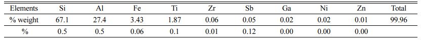 The X-ray Fluorescence Analyzer TORONTECH TT characterizes kaolin - EDXPRTtool to ascertain the content of the elements; testing was conducted at the Indonesian Institute of Sciences (LIPI) physics laboratory, Serpong. The main content of kaolin is Si (67.1% weight), Al (27.4% weight); the rest is shown in Table 1. Another article shows almost the same content of kaolin elements, but in different percents; This researcher showed the results of kaolin test with SiO2 content of 45.80% mass [12]; researcher Katsuki H. showed SiO2 content of 45.26% mass [2]; In general, the largest content of kaolin is Si, as shown in this reference article, SiO2 ±49.4%. [5]; SiO2 47.10 %wt [13]; SiO2 71.50% [6].
