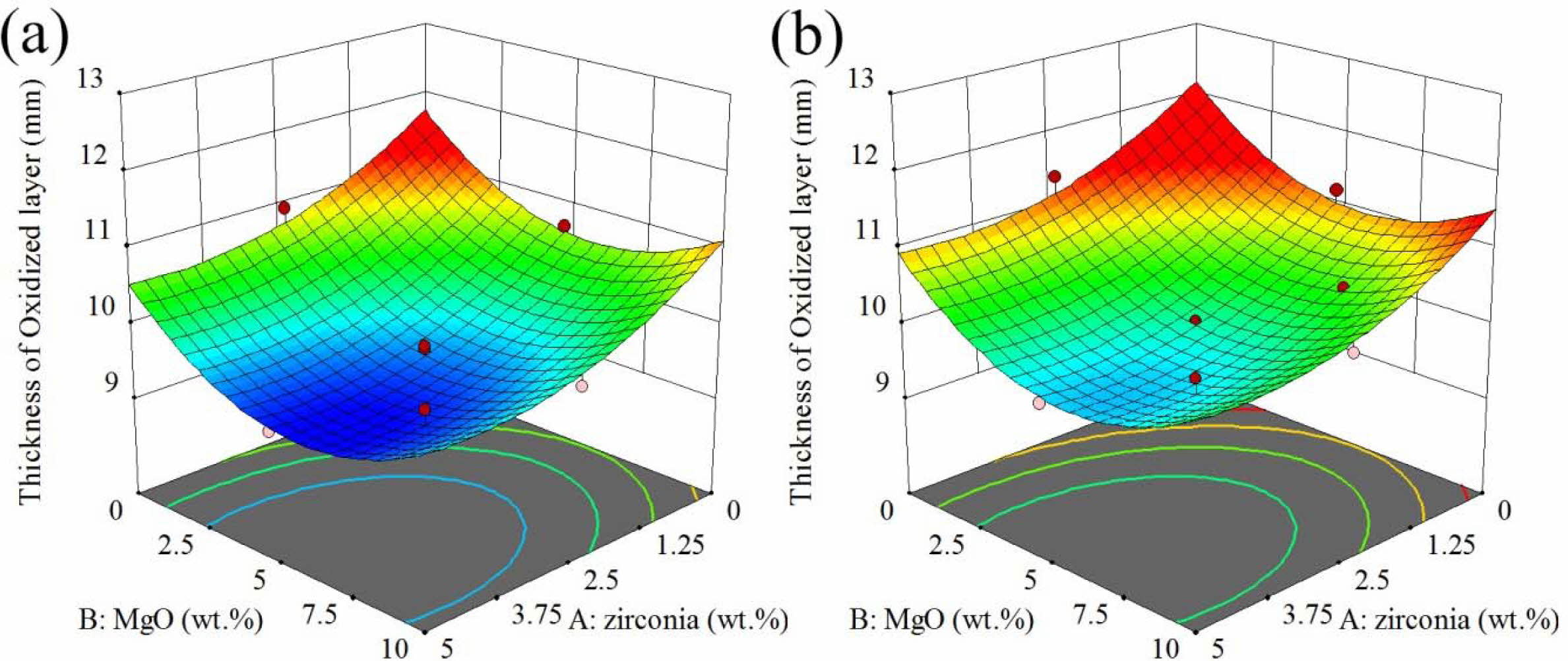 Table 6 ANOVA test for CCD in the case of oxidation thickness of AMZG refractory composite |