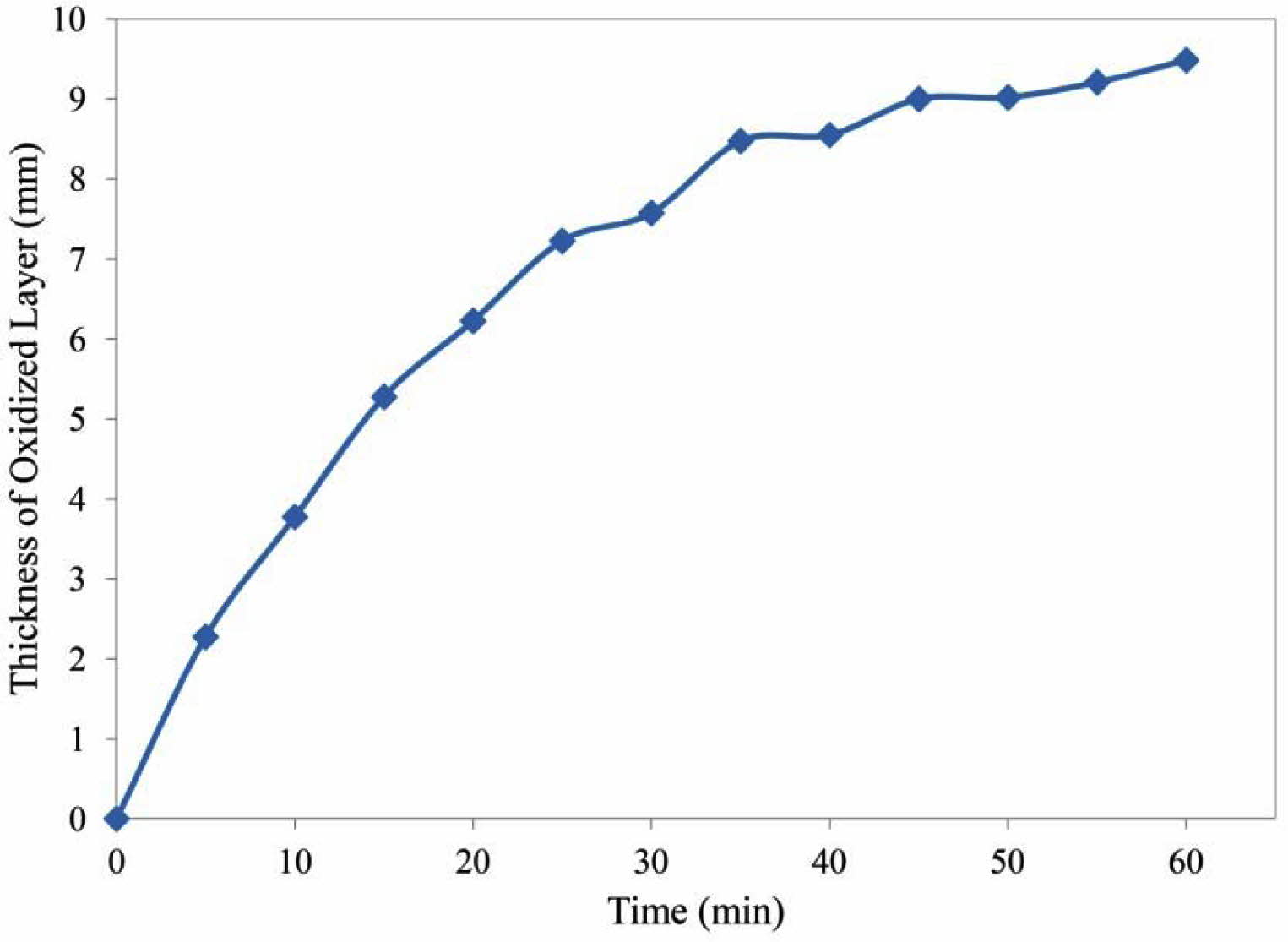 Fig. 9 The thickness of oxidized layer versus oxidation time at 900 oC. |