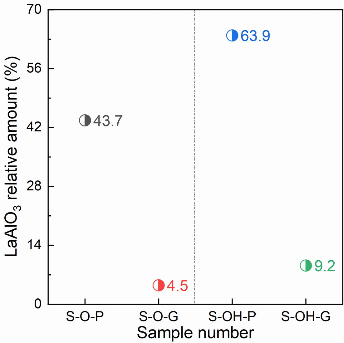 Fig. 2 Relative amount of LaAlO3 in different samples. |