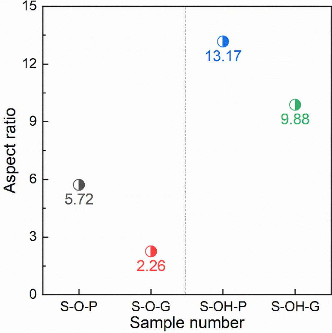Fig. 4 Aspect ratios of the different samples. |