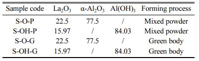 The starting raw materials, in this work, include α-Al2O3 (≥99.9%, micron-sized, Shanghai Aladdin Bio- chemical Technology Co., Ltd., Shanghai, China), Al(OH)3 (analytical-grade purity, Sinopharm Chemical Reagent Co., Ltd, Shanghai, China), and La2O3 (analytical-grade purity, Sinopharm Chemical Reagent Co., Ltd, Shanghai, China).