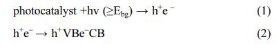 The general process of photocatalysis is: when a semiconductor receives photon irradiation, it can absorb photon energy with energy larger than the forbidden band width (Eg) of the semiconductor, and some electrons on valence band are excited to transition to conduction band, at the same time, holes (h+) are generated. The photo-generated electron-hole pairs will trigger a series of redox reactions, which is the general process of photocatalytic reaction. Equations (1) and (2) show the above process.