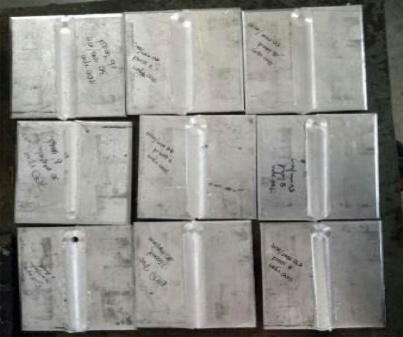 Fig. 1 Friction stir welded specimens of AA1100 aluminium alloy. |