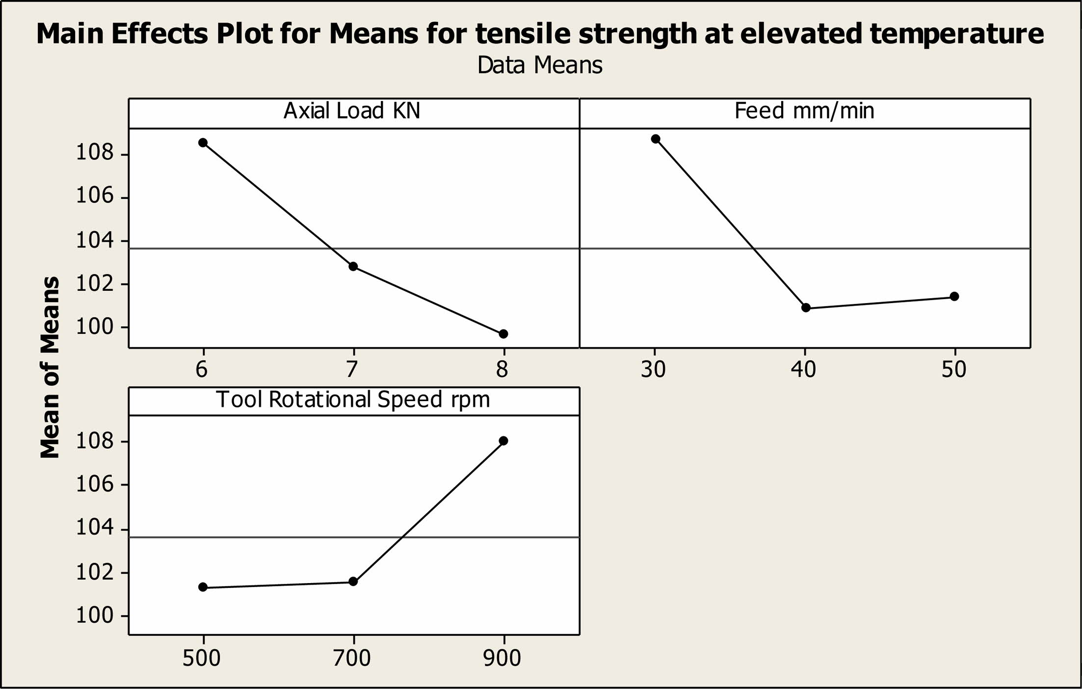 Fig. 4 Main effect plot for means for Tensile strength at elevated temperature |